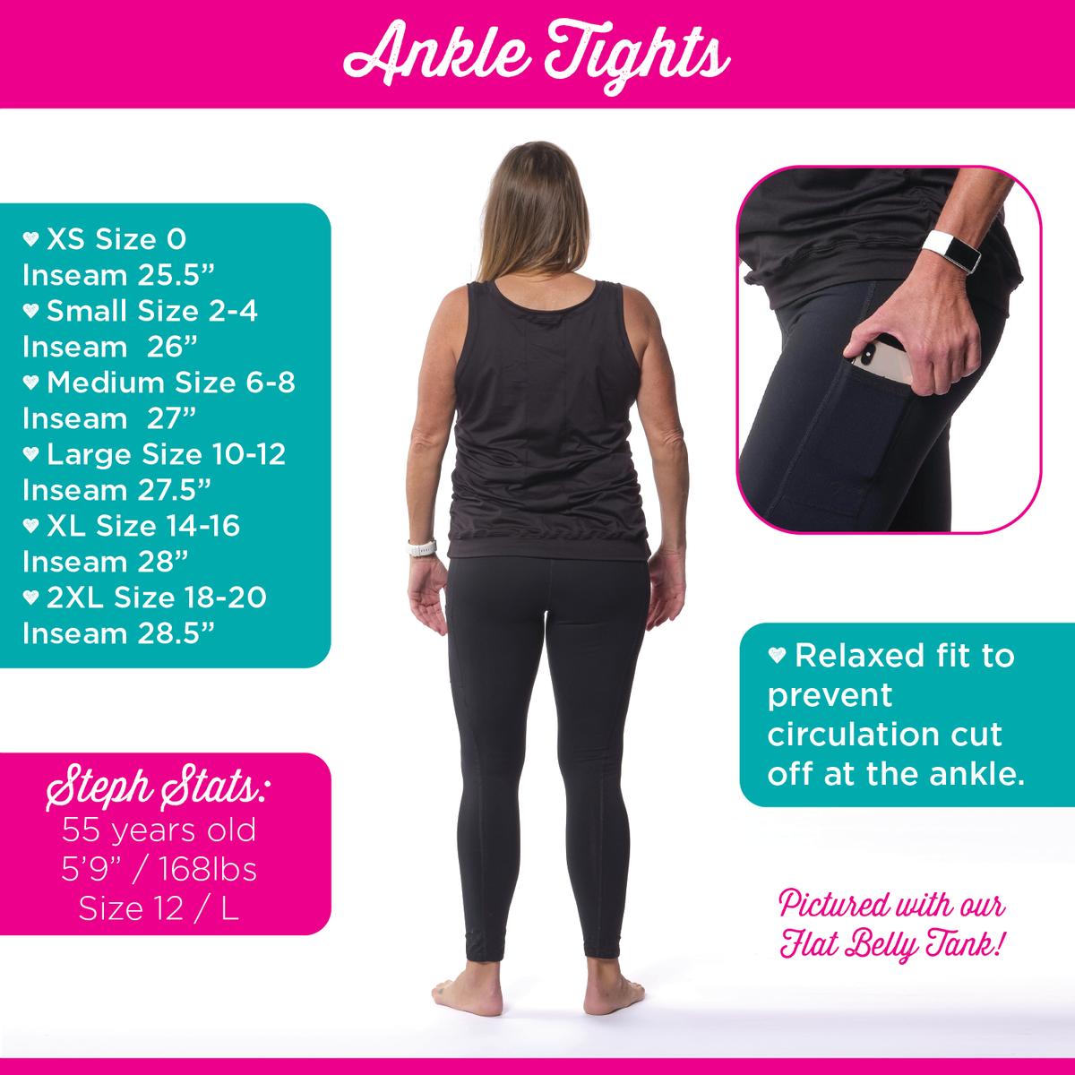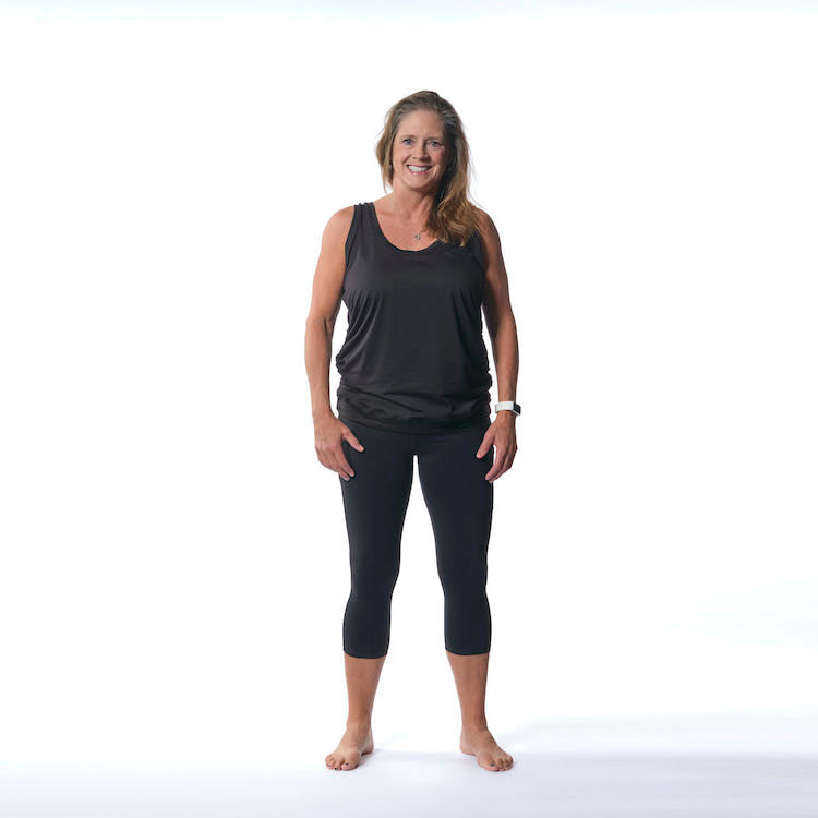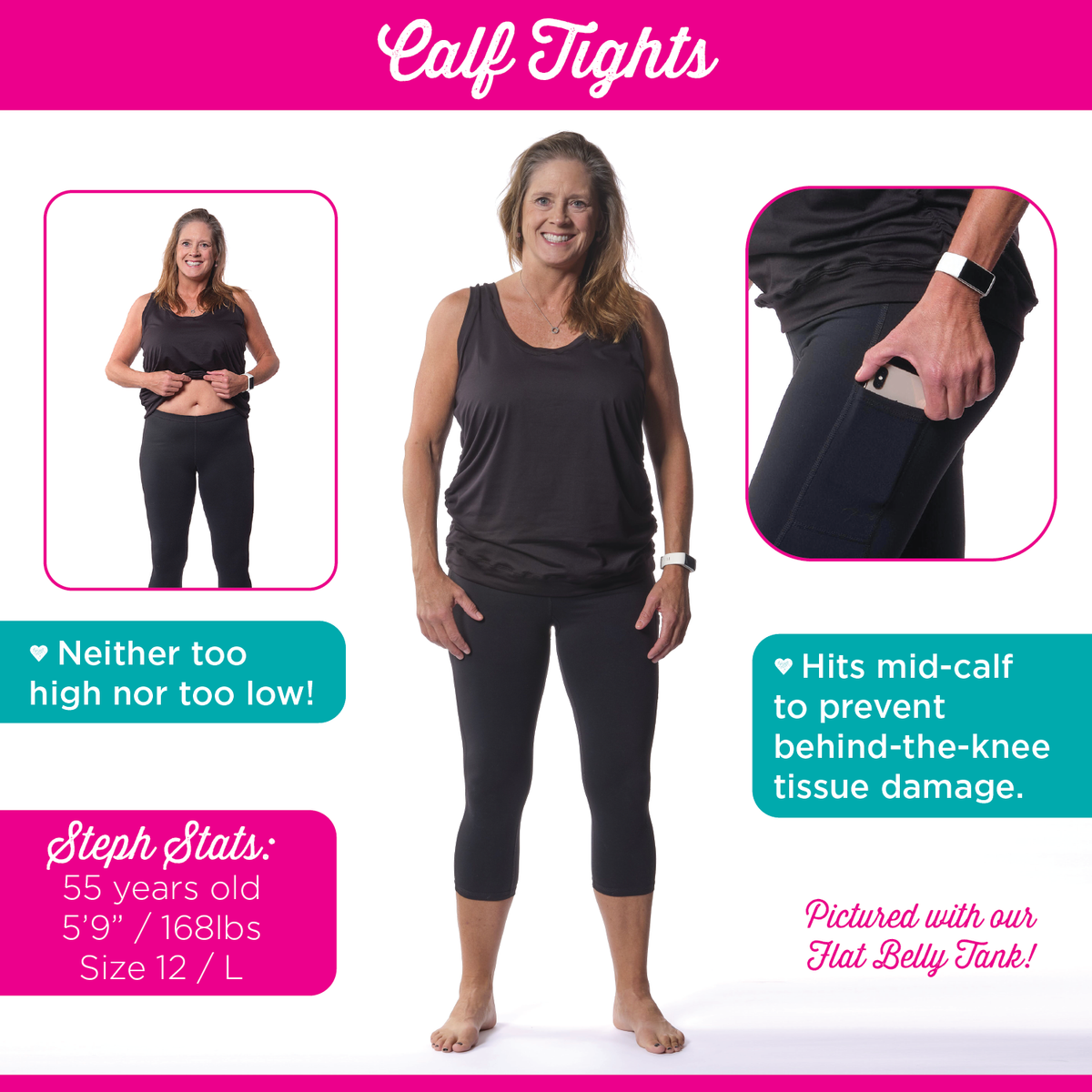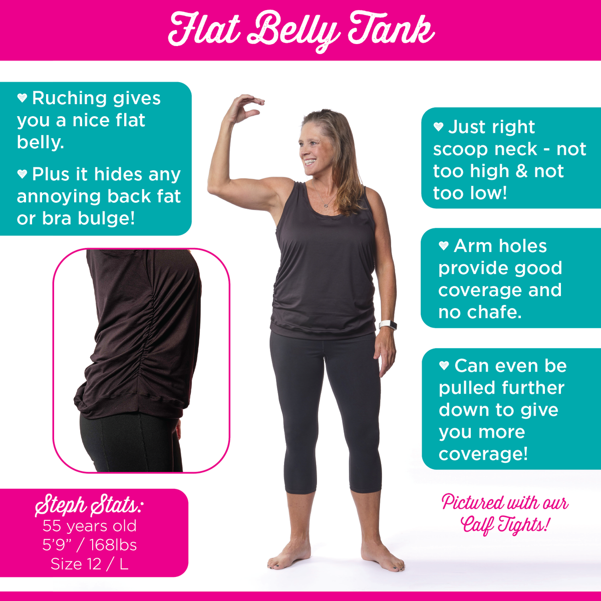 Our Designer, our CEO and a perfectly imperfect athlete. Pictured here is our Flat Belly Tank (FBT), size Large, Calf Length Tights Size Large.